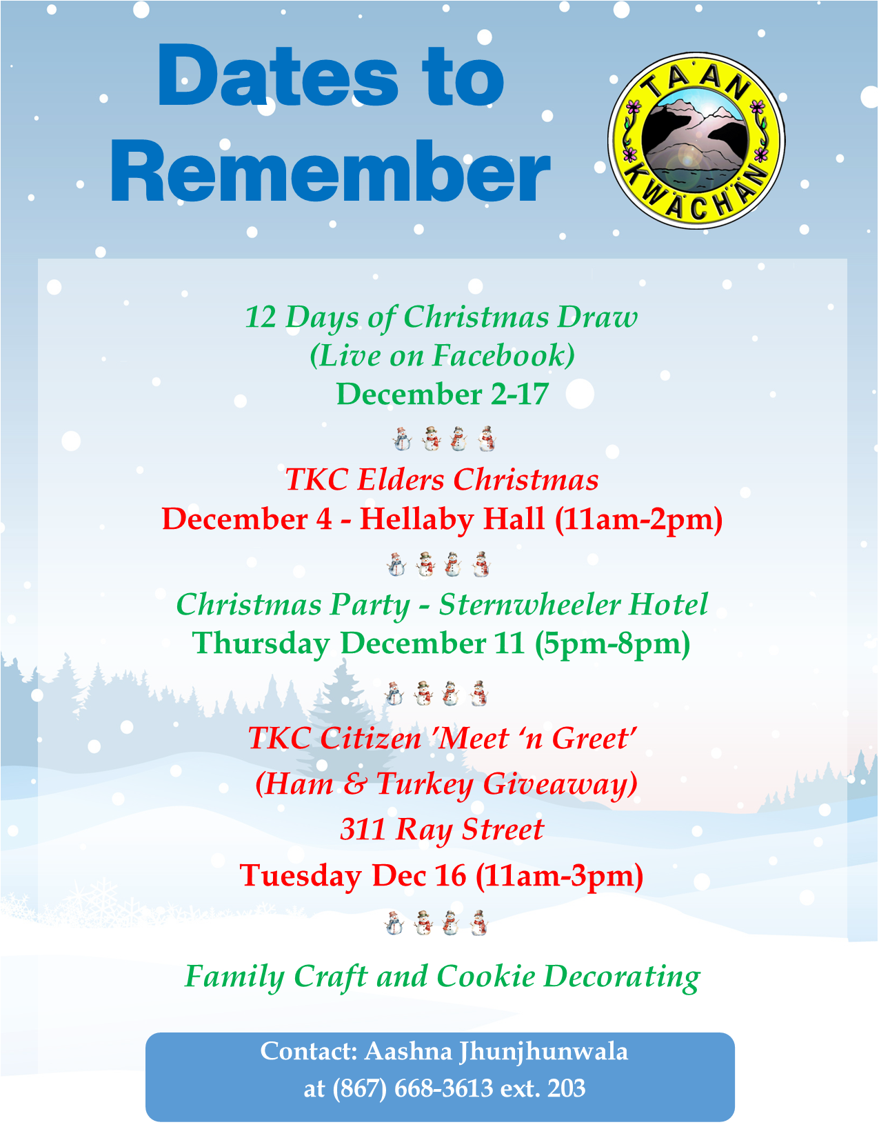 TKC’s Wellness Department is able to assist with online booking for vaccinations or for extra support needs, please contact Natalie Hare at (867) 668-3613 ext. 402 or email adminassist@taan.ca