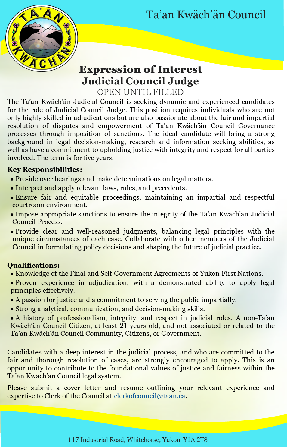Duties: Review and approve applications from Citizens pursuing post-secondary opportunities. Make recommendations to Council review and approval of applications from Citizens for funding opportunities, and make recommendations to Council regarding current and future Education initiatives and opportunities.