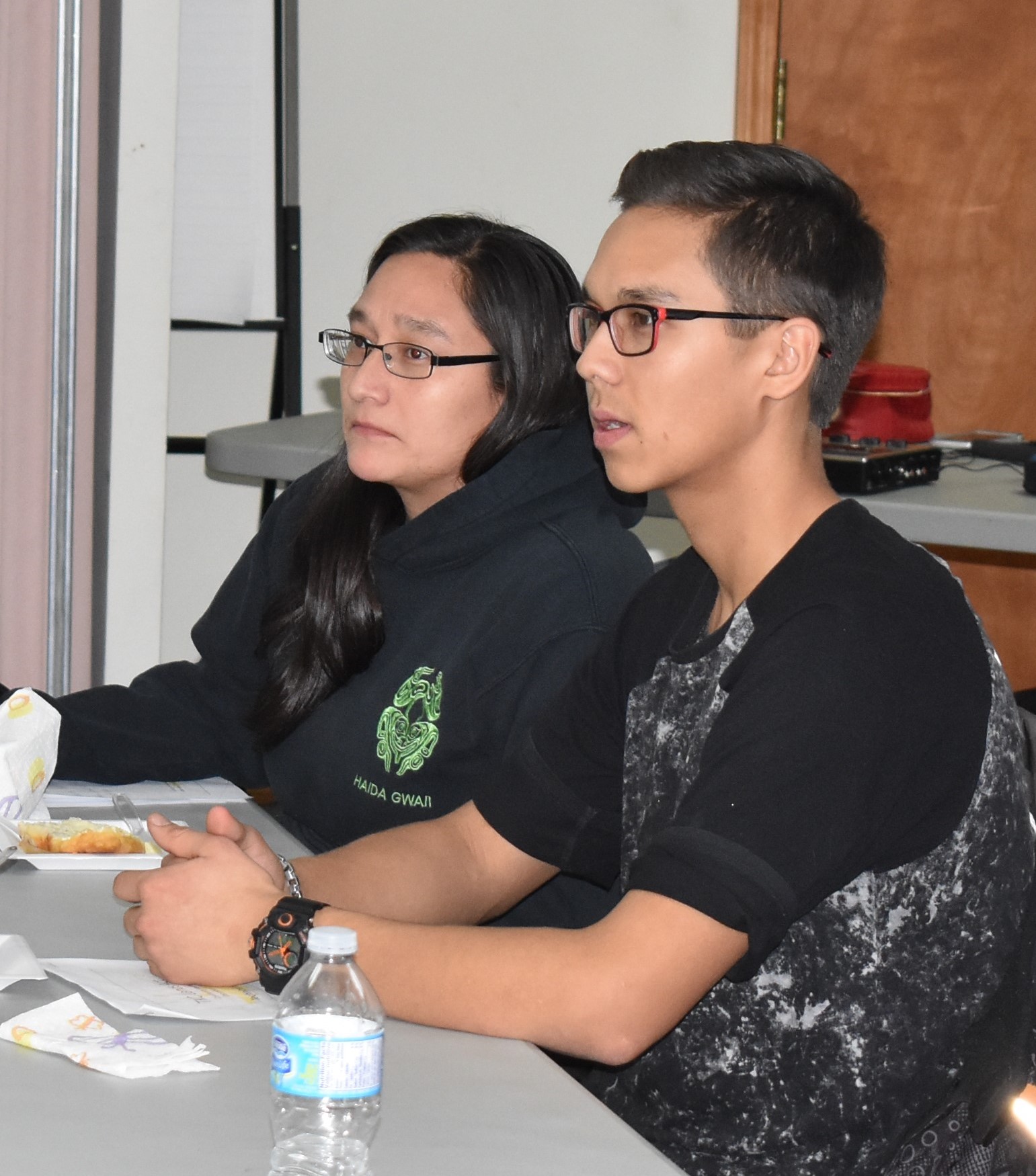 Coralee Johns and Brandon Smith listen to the presentations.